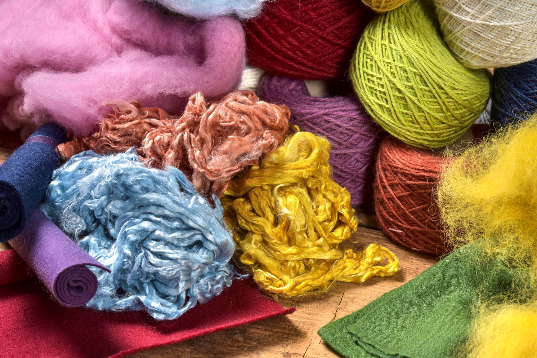 Hier finden Sie alle Rohwaren / Produkte, die bei uns pflanzlich gefärbt werden und welche Sie zum Basteln, Filzen und Stricken weiterverwenden können.